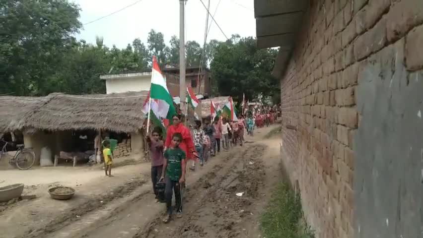 बस्ती: प्राथमिक विद्यालय बखरिया के बच्चों ने गांव गांव जाकर हर घर तिरंगा लगाने का दिया संदेश