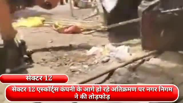 फरीदाबाद: सेक्टर-12 में एस्कॉर्ट्स कंपनी के आगे हो रहे अतिक्रमण पर नगर निगम ने की तोड़फोड़