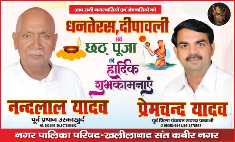 #प्रेम_चंद_यादव पूर्व जिला पंचायत सदस्य प्रत्याशी सभी क्षेत्रवासियों एवं नगरवासियों को #दीपावली की शुभकामनाएं एवं बधाई।