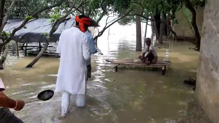 बाढ़ प्रभावित क्षेत्रों का दौरा कर भाजपा क्षेत्रीय प्रभारी नगर पार्षद पति विकाश शर्मा ने बाढ़ पीड़ितों को कराई भोजन।