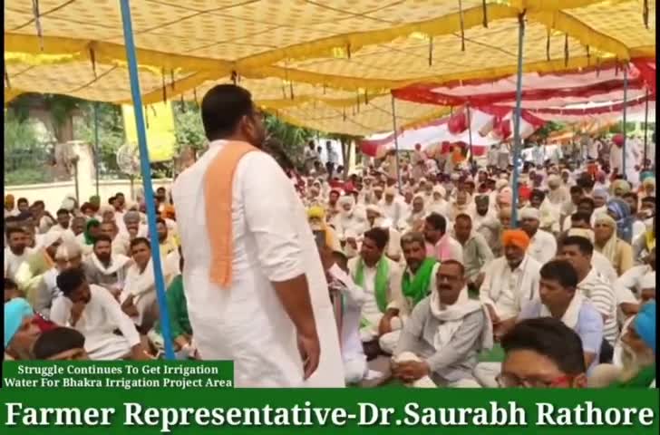 भाखड़ा क्षेत्र मे सिंचाई पानी की मांग को लेकर जिला कलेक्ट्रेट के गेट पर हजारों किसानों के साथ सातवे दिन महापड़ाव जारी है