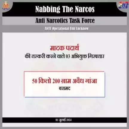 #ANTF लखनऊ यूनिट द्वारा गिरफ्तार करते हुए उनके कब्जे से 50.200 किलोग्राम गांजा बरामद किया गया है