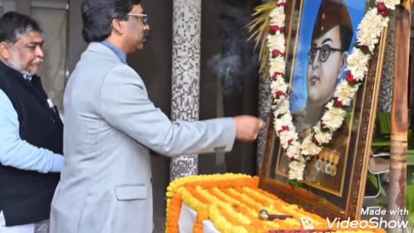 कांके: कांके स्थित आवास पर सुभाषचंद्र बोस जी की जयंती के अवसर पर उनकी तस्वीर पर माल्यार्पण कर सीएम ने दी श्रद्धांजलि