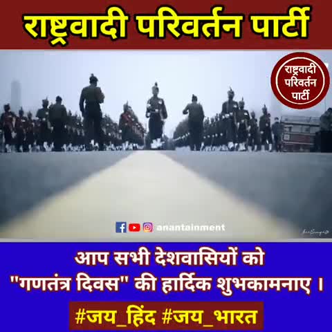 आप सभी देशवासियों को 'राष्ट्रवादी परिवर्तन पार्टी' की तरफ से "गणतंत्र दिवस" की हार्दिक शुभकामनाएं #जय_हिंद #जय_भारत #RPP