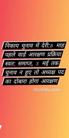 विदिशा नगर: निकाय चुनाव में देरी:8 माह पहले वार्ड आरक्षण प्रक्रिया स्वत: समाप्त, 3 मई तक चुनाव न हुए तो अध्यक्ष पद का दोबारा होगा