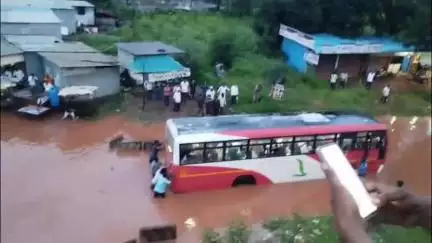 ಚಿಟಗುಪ್ಪ: ಭಾರಿ ಪ್ರಮಾಣದಲ್ಲಿ ಸುರಿದ ಮಳೆಯಿಂದಾಗಿ ರಸ್ತೆ ಮೇಲೆ ನೀರು ಸಂಗ್ರಹಗೊಂಡು ವಾಹನಗಳ ಸಂಚಾರ ಬಂದ್ ಆದ ಪ್ರಸಂಗ ಮನ್ನಾಏಖೇಳ್ಳಿ ಗ್ರಾಮದಲ್ಲಿ ಜರುಗಿದೆ. ರಸ್ತೆ ಮೇಲೆ ನಿಂತ ನೀರಿನಲ್ಲೇ ಸಾರಿಗೆ ಸಂಸ್ಥೆಗೆ ಸೇರಿದ ಬಸ್ ಒಂದು ಬಂದ್ ಆಗಿ ನಿಂತಿದ್ದು, ಬಸ್ಸಿಗೆ ತಳ್ಳೋ ಮೂಲಕ ಸಾರ್ವಜನಿಕರು ರಸ್ತೆಯಿಂದ ಪಕ್ಕಕ್ಕೆ ಸೇರಿಸಿದ್ದಾರೆ