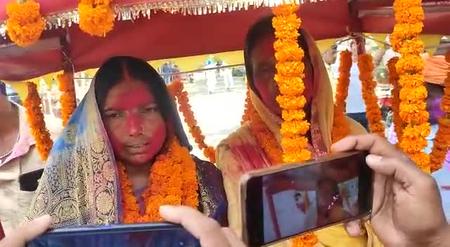 सुनीता देवी पति महेंद्र यादव भाग संख्या 12 देवीपुर देवघर बसमाता से समाहरणालय तक रिक्शा से नॉमिनेशन करने पहुंचे नामांकन के बाद पत्रकारों से बात चीत करते सुनिता देवी जी
