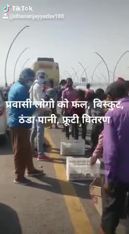तिर्वा: प्रवासी लोगो को ठंडा पानी, फ्रूटी, फल और बिस्कुट वितरित करते हुये इंजीनियर धनंजय यादव, शोभित यादव, गोविन्द, दुर्गेश !