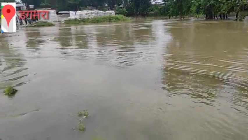 डगमरा में पुल के ऊपर से बाढ़ का पानी बहता हुआ और ये रोड कनौली बाॅर्डर कि और जाता हैं