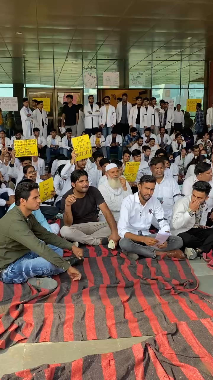 शहीद हसन खान मेडिकल कॉलेज में हरियाणा सरकार की बॉण्ड पॉलिसी के खिलाफ प्रदर्शन कर रहे एमबीबीएस छात्रों को पीसीसी नेता चौ० महताब अहमद जी समर्थन देने मेडिकल कॉलेज नलहड़ पहुँचे
