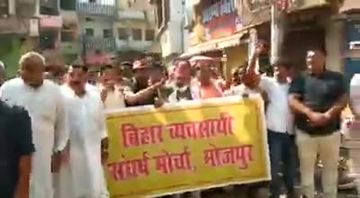आरा: आरा में स्वर्ण व्यवसाई की हत्या के विरोध में भाजपा और कैट के द्वारा आरा बंद को लेकर मार्च निकाला
