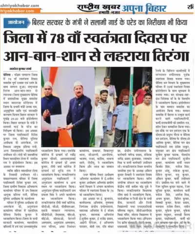 जिला में 78 वाँ स्वतंत्रता दिवस पर आन- बान - शान से लहराया तिरंगा।
