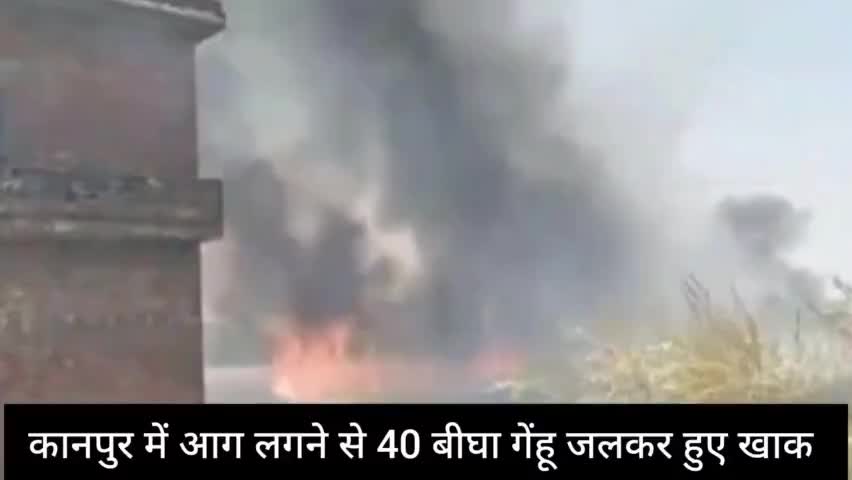 कानपुर के उदयपुर गांव में 40 बीघा गेहूं की फसल जलकर हुई खाक।