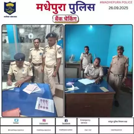 पुलिस अधीक्षक मधेपुरा के निर्देशानुसार बैंकिंग प्रतिष्ठानों में सुरक्षा व्यवस्था को सुनिश्चित करने हेतु बैंकों की सुरक्षा /जांच की जा रही हैं। बैंक के अंदर एवं बाहर संदिग्धों पर निगरानी रखी जा रही हैं।