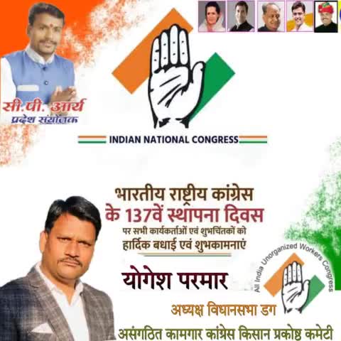 भारतीय राष्ट्रीय कांग्रेस के 137वें स्थापना दिवस पर सभी कार्यकर्ताओं एवं शुभचिंतकों को हार्दिक बधाई एवं शुभकामनाएं l