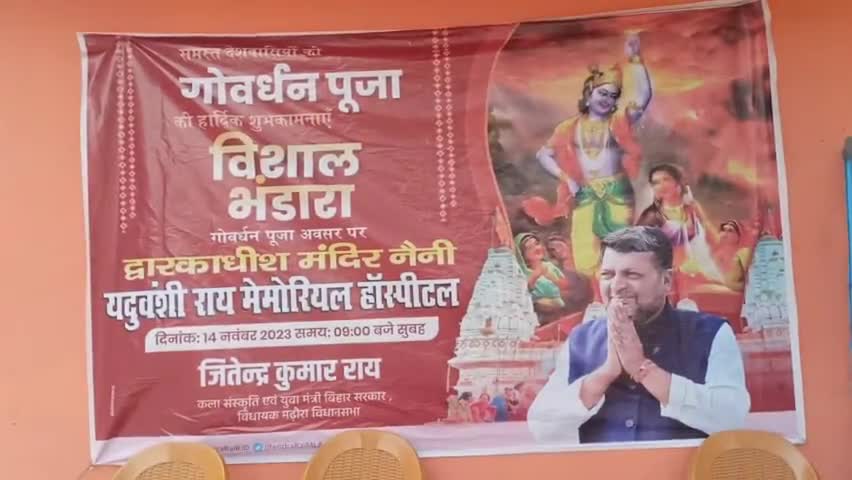 छपरा: गोवर्धन पूजा को लेकर द्वारिकाधीश मंदिर नैनी में बिहार के युवा व कला संस्कृति मंत्री द्वारा विशाल भंडारे का हुआ़ आयोजन।