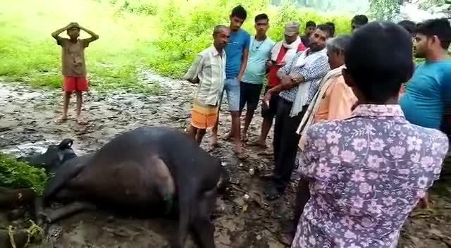 ज्ञानपुर: आकाशिय विजली गिरने के कारण दो भैसों की मौत