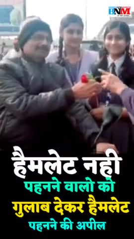 मोतिहारी में स्कूल के छात्रों ने हैमलेट नही पहनने वालो को गुलाब देकर हैमलेट पहनने की अपील की