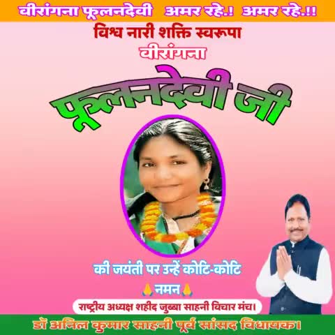 🌍 विश्व नारी शक्ति स्वरूपा वीरांगना फूलनदेवी जी की 60 वी जयंती पर उन्हें कोटि-कोटि नमन🙏