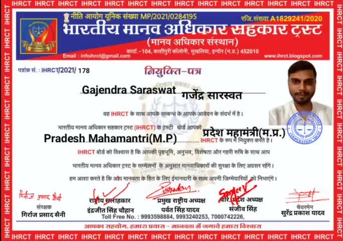 भारतीय मानव अधिकार सहकार ट्रस्ट में गजेंद्र सारस्वत को मध्य प्रदेश महामंत्री बनने पर बहुत-बहुत बधाई💐💐💐💐💐💐💐💐💐