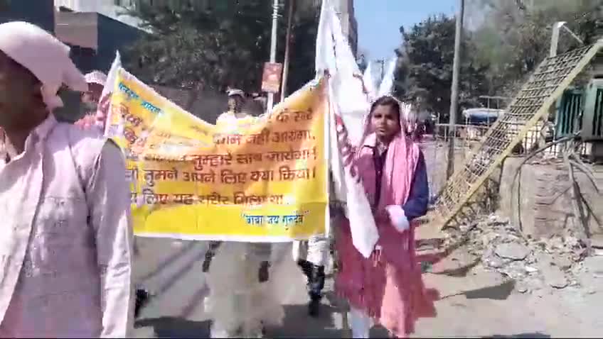 जिला संभल के कस्बा चंदौसी में बाबा जयगुरुदेव की अनुयाई प्रचार करते हुए