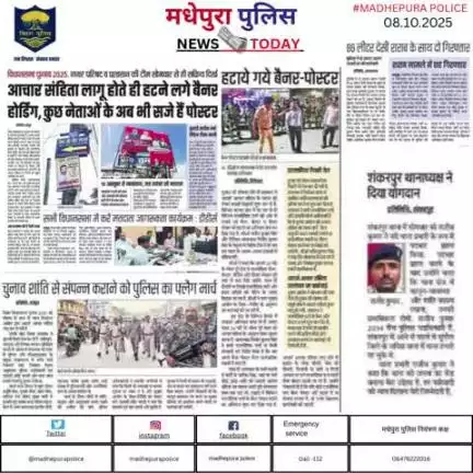 आज दिनांक-08.10.2025के अखबार में प्रकाशित #मधेपुरा पुलिस से जुड़ी खबरें। @bihar_police