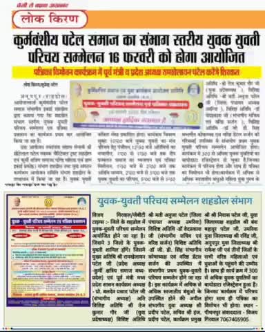 16 फरवरी को संभागीय कुर्मी क्षत्रिय समाज द्वारा आयोजित युवक युवती परिचय सम्मेलन शहडोल में आप सभी स्वजातीय जन आमंत्रित है