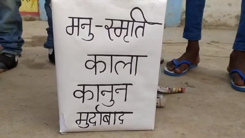 मिर्ज़ापुर: #आज दिनाँक 25/12/2022 को #घुरहुपट्टी के अंबेडकर चौराहे पे मनु स्मृति कानून का दहन करते लोग....
