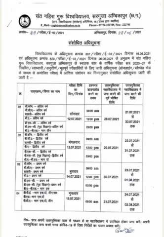 संत गहिरा गुरु विश्वविद्यालय के छात्रों की समय सारणी हुई घोषित