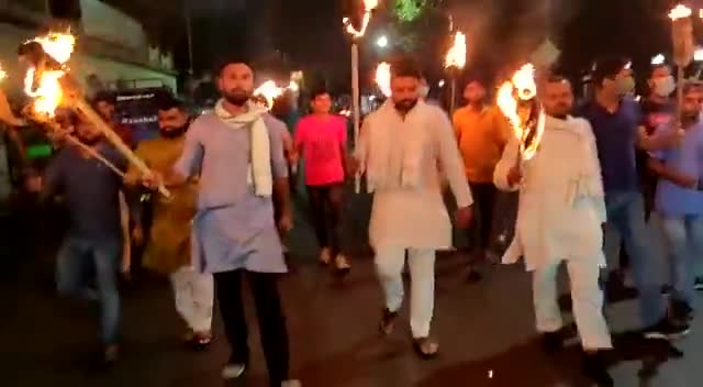 जिला शाहजहाँपुर के शहीद स्मारक पर किसानों के खिलाफ पारित किए गए अध्यादेश के खिलाफ एक विशाल मशाल जुलूस टाउन हॉल स्तिथ रा