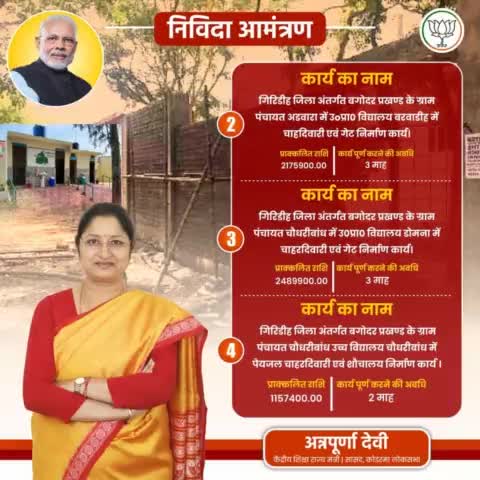 धन्यवाद माननीय कोडरमा सांसद श्रीमती अन्नपूर्णा देवी जो आप लगातार प्रयासरत है अपने क्षेत्र के विकास के लिए।।