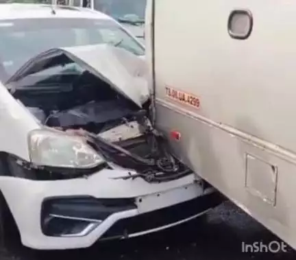 ಕಾಪು: ಎರ್ಮಾಳಿನಲ್ಲಿ ನಿಂತಿದ್ದ ಬಸ್ ಗೆ ಕಾರು ಡಿಕ್ಕಿ - ಕಾರು ಚಾಲಕನಿಗೆ ಗಾಯ