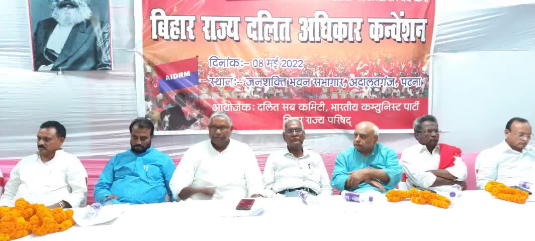 भारतीय कम्युनिस्ट पार्टी बिहार राज्य परिषद के दलित सब कमिटी की ओर से पटना के जनशक्ति भवन में आयोजित बिहार दलित अधिकार कन्वेंशन में पहुंचे भारतीय कम्युनिस्ट पार्टी के महासचिव कॉमरेड डी राजा