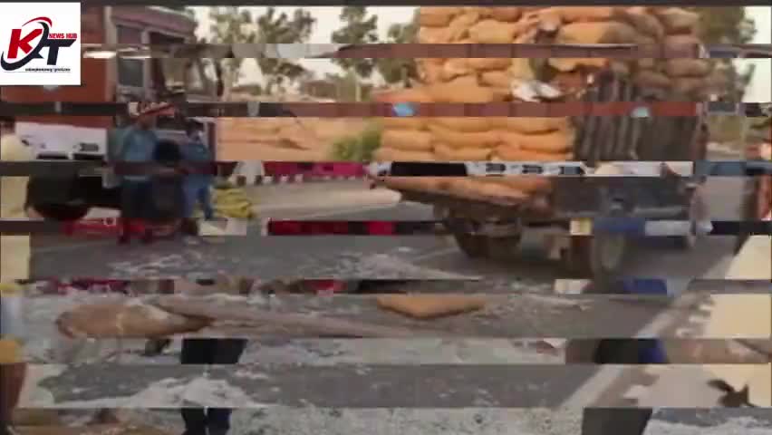 फोरलेन सड़क मार्ग पर हुआ #हादसा #ओवरटेक करते समय ट्रक ने मारी #ट्रैक्टर ट्राली को टक्कर दुर्घटना में ट्रैक्टर चालक #घायल