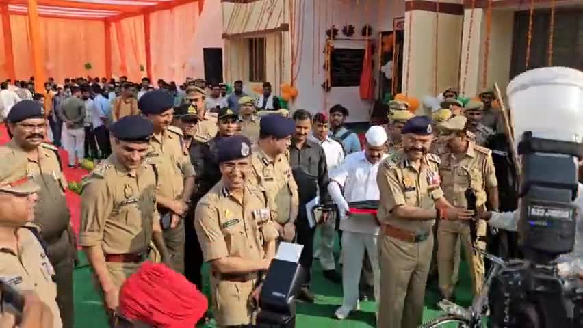 #रायबरेली के नवसृजित #थाना_चंदापुर का डीजीपी,IG ने किया निरीक्षण, 12 ग्राम प्रहरी को साइकिल,छाता और लाठी का वितरण किया