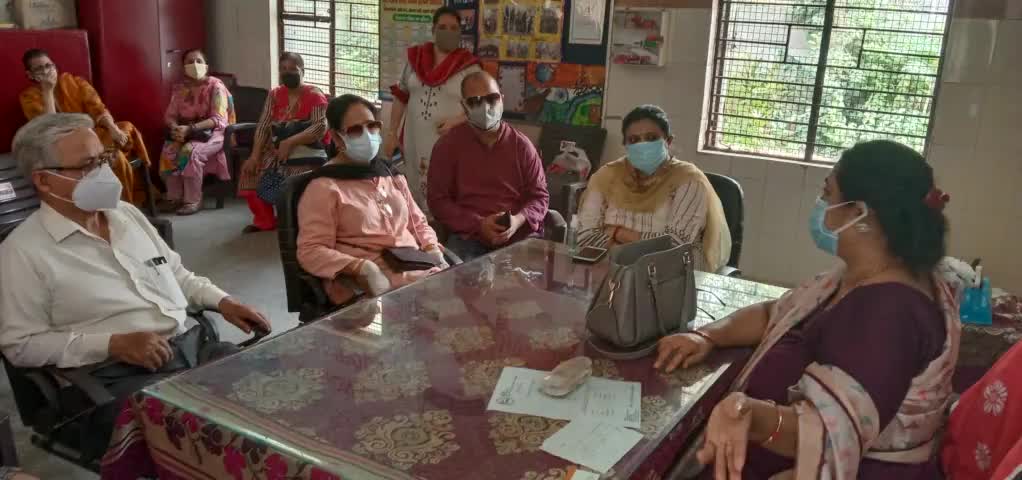 6 ब्लॉक निगम स्कूल में टीचर के साथ वेक्सीन ड्राइव को लेकर चर्चा की , व्यवस्था का निरीक्षण किया ।