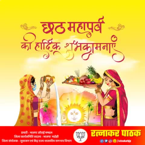 लोक आस्था एवं सूर्य उपासना के महापर्व पवित्र छठ पूजा की हार्दिक शुभकामनाएँ। जय छठी मैया की 🙏