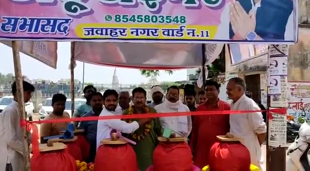 कोंच नगर के लोगों के लिए शीतल प्याऊ का सभासद छोटू टाईगर ने फिर सागर तालाब मेला ग्राउण्ड में शुभारंभ कराया प्रमुख समाज सेवी पूर्व सभासद अनिल अग्रवाल दतिया बालों ने निःशुल्क प्याऊ का फीता काटा