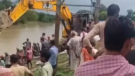 रुन्नी सैदपुर: तिलक ताजपुर में बागमती नदी पर बने बांध में रिसाव की मरम्मत का कार्य शुरू