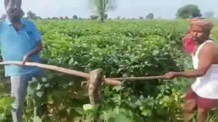नुकतेच नांदेड जिल्ह्यात विविध तालुक्यात मोठ्या प्रमाणात पाऊस पडले काही ठिकाणी तर अतिवृष्टी देखील झाली होती, यामुळे शेती पिकांचे मोठे नुकसान झाले होते, यातून सावरत शेतकरी बंधू आता आहे त्या पिकांकडे लक्ष देत असून फवारणीचे काम करत आहेत, बिलोली तालुक्यातील हुनगुंदा शेत शिवारात भला मोठा अजगर दिसून आल्याचा व्हीडिओ व्हायरल होत असून शेतकऱ्यांनी सोयाबीनच्या शेतात जाण्याकरिता योग्य ती खबरदारी घ्यावी जेणेकरून त्यांचा जीव धोक्यात जाणार नाही.