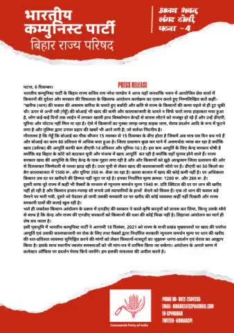 खाद की पर्याप्त आपूर्ति व कालाबाजारी पर रोक लगाने के लिए 18 दिसम्बर को प्रखंड मुख्यालयों पर होगा राज्यव्यापी विरोध प्रदर्शन #CPI #Bihar