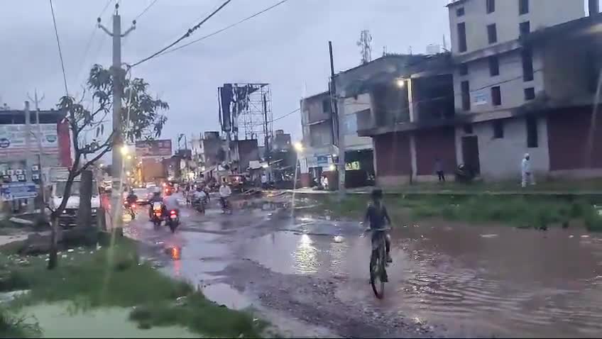 मधुबनी में बारिश होने से रोड पर जल जमाव से लोग परेशान।