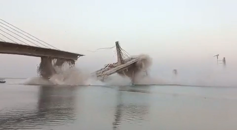 भागलपुर के सुल्तानगंज में 1717 करोड़ रुपए की लागत से बन रहा अगुवानी पुल हुआ ध्वस्त। खगड़िया के अगुवानी से भागलपुर के सुल्तानगंज के बीच बन रहा था ये पुल।