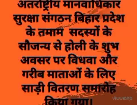 मानवाधिकार के सदस्यों के सौजन्य से होली के शुभ अवसर पर विधवा और गरीब माताओं के लिए साड़ी वितरण समारोह किया गया।