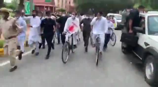 पेट्रोल डीजल, रसोई गैस और बढ़ती महंगाई के खिलाफ श्री राहुल गांधी जी का संसद तक साइकिल मार्च।