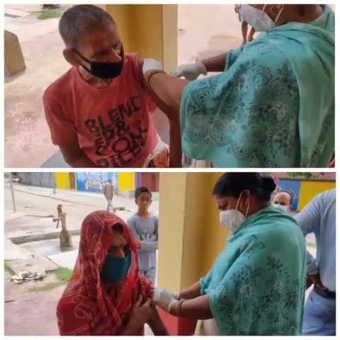 कल मधुसूदन मंदिर के सामने बने यात्री शेड में अपने मम्मी पापा को भी कोविडशील्ड का पहला टीका लगवाया।