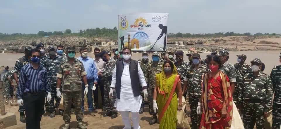 सफाई अभियान के दौरान माँ नर्मद के तट पर