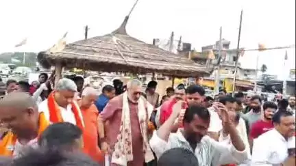 बेगूसराय: खातोपुर के मंदिर में गिरिराज सिंह ने लालू यादव पर बोला हमला