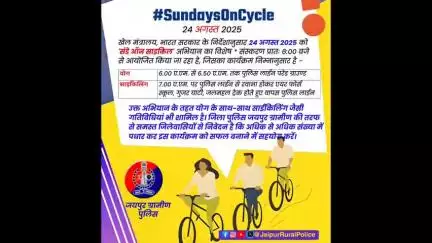 दिनांक 24.08.2025 को #sundayoncycle के अवसर पर जयपुर ग्रामीण पुलिस लाइन परेड ग्राउंड से होगी कार्यक्रम की शुरुआत.....