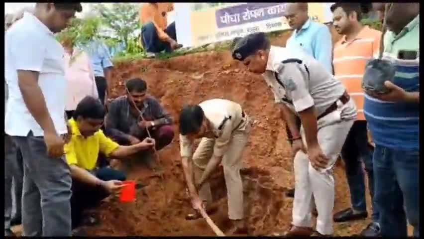 एसपी महोदय के साथ वृक्षारोपण करते हम सभी पुलिस लाइन गढ़वा में